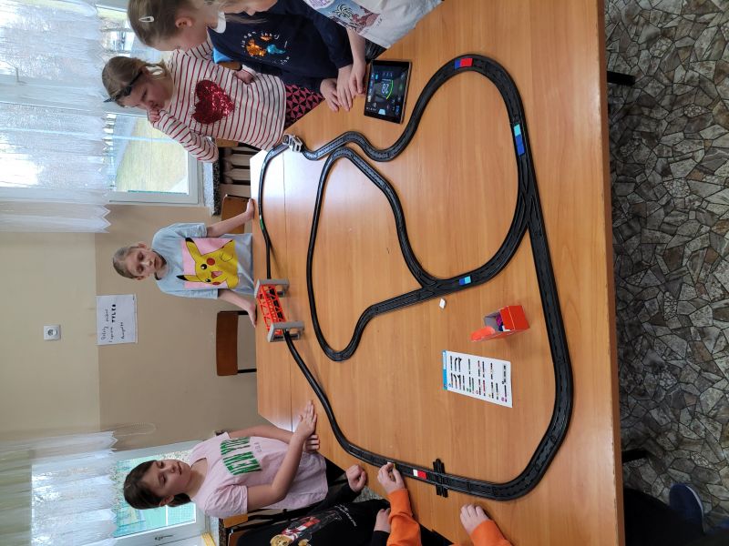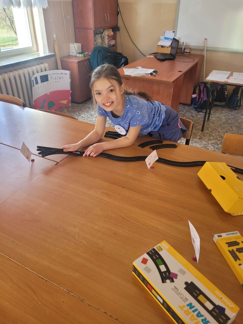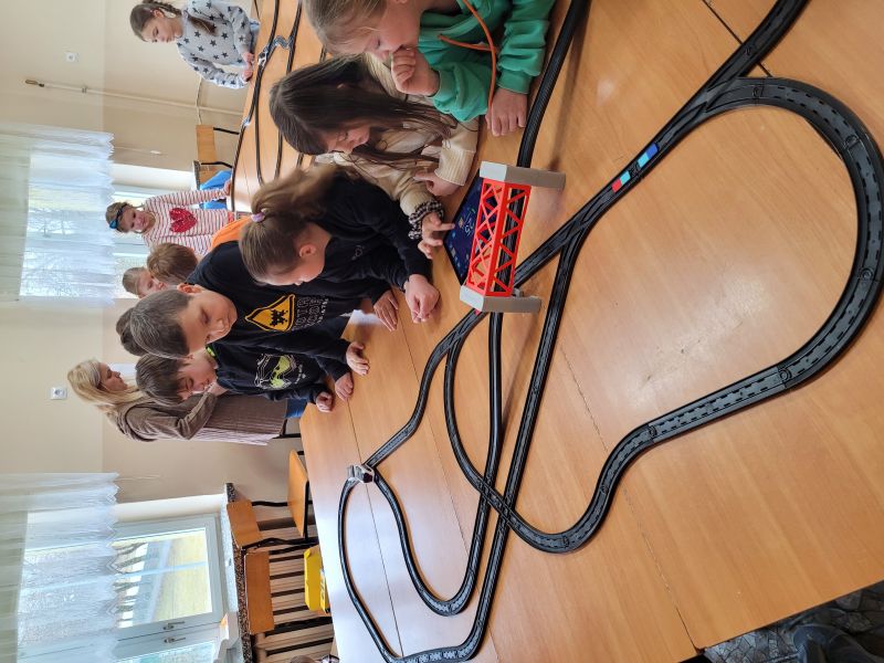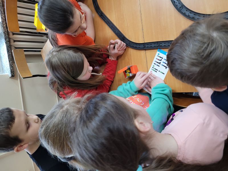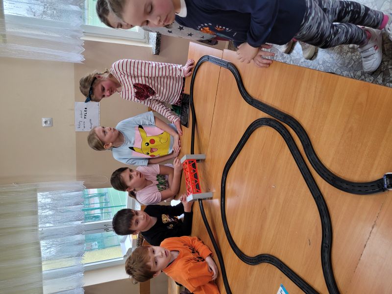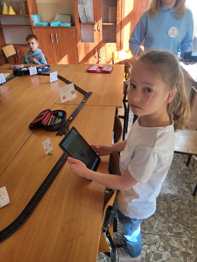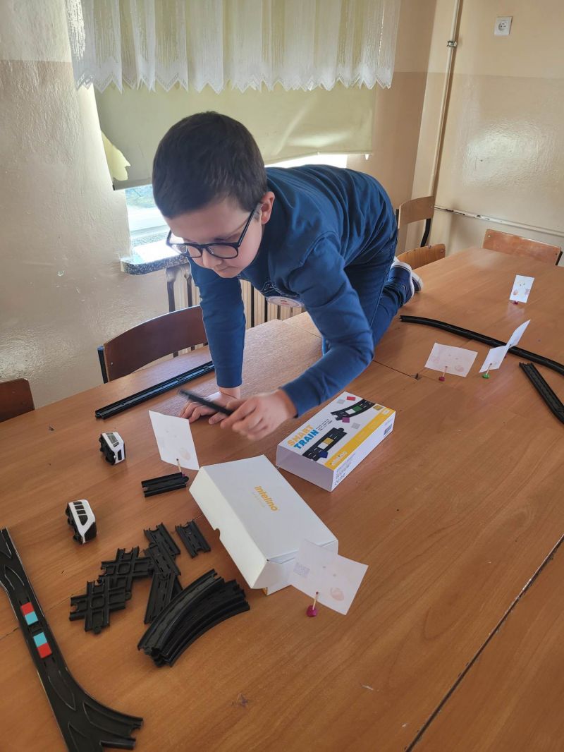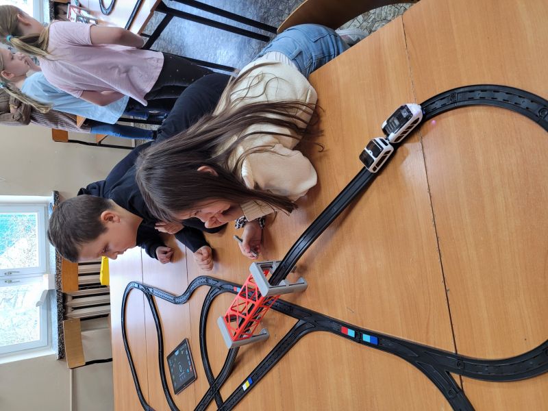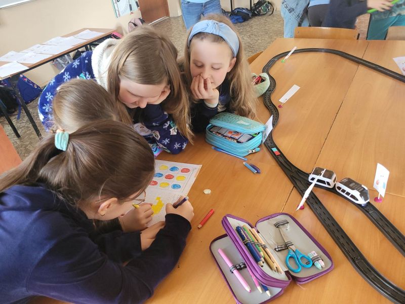 nasi uczniowie z wykorzystaniem tabletów uczyli się kodowania z inteligentnym pociągiem INTELINO. Pociąg wykorzystuje