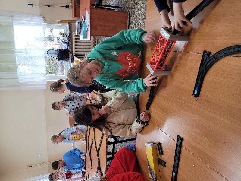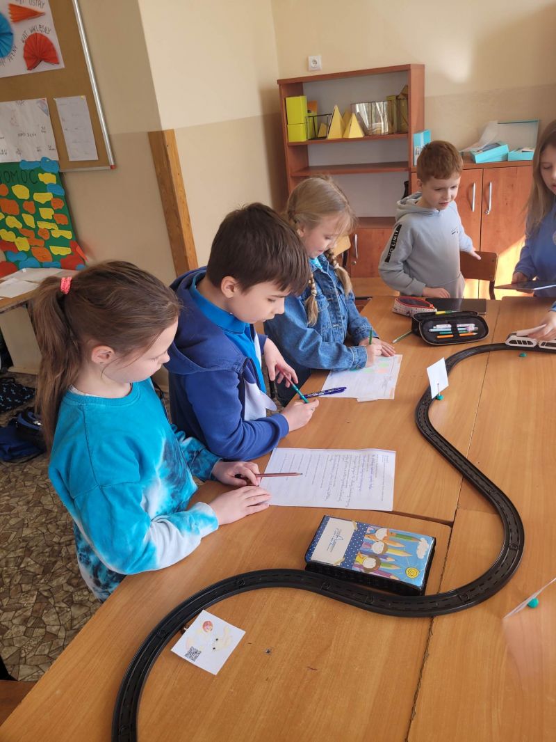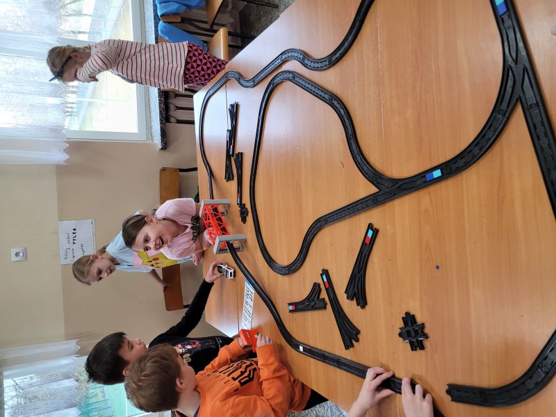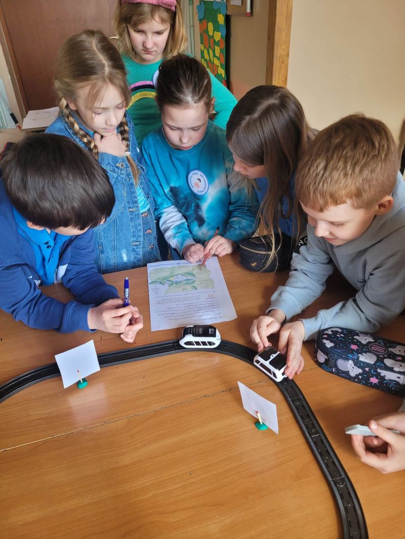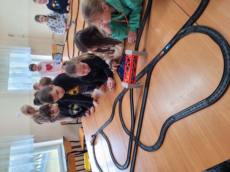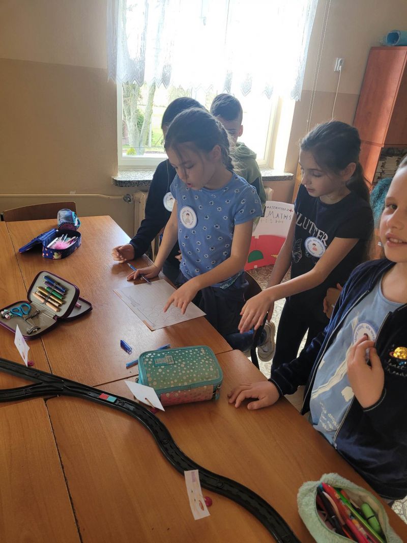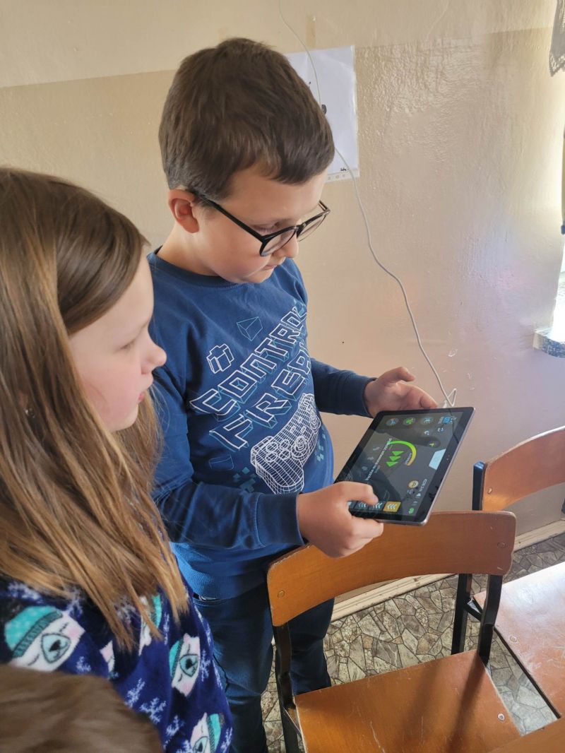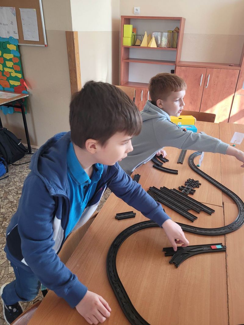 nasi uczniowie z wykorzystaniem tabletów uczyli się kodowania z inteligentnym pociągiem INTELINO. Pociąg wykorzystuje