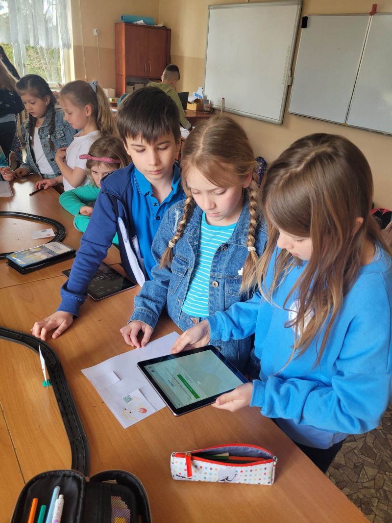 zabawy z wykorzystaniem sprzętu z Laboratorium Przyszłości przygotowaliśmy dla nich wilkanocne zadania ortograficzne, które